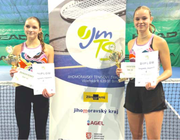 Anežka a Eliška Dřevojanovy se staly přebornicemi Jihomoravského kraje pro rok 2025 ve čtyřhře v kategorii dorostenek.