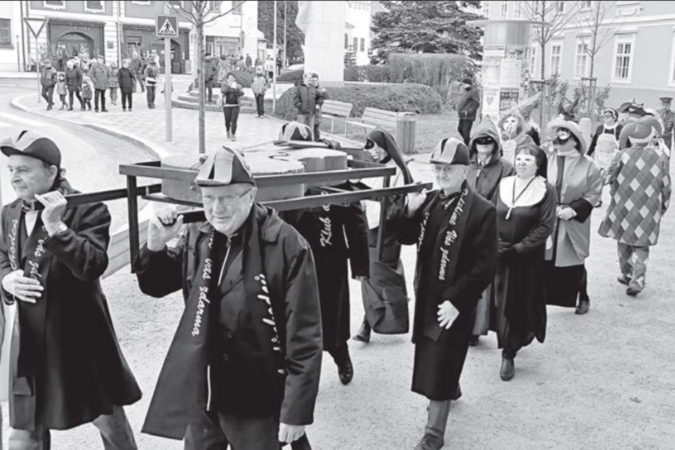 Tradiční a oblíbená akce moravskobudějovického Klubu důchodců vyvrcholila ve velkém sále Besedy, kde byla basa slavnostně pochována. Smuteční ceremoniál se samozřejmě ani letos nemohl obejít bez vtipných veršů Václava Kováře, který ve své řeči opět reagoval na aktuální dění.
