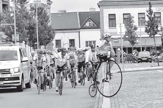 Je neděle 14. června 2020, dvacet minut před polednem. Zatímco drtivá většina moravskobudějovických občanů se chystá zasednout ke svátečnímu obědu, v centru města na náměstí Míru panuje na tuto dobu neobvyklý ruch. O oživení se se svým početným doprovodem vesměs na dvou kolech postaral Josef Zimovčák, několikanásobný mistr světa a České republiky v jízdě na vysokém kole. A právě na něm přivedl na náměstí Míru padesátičlenný cyklistický peloton.